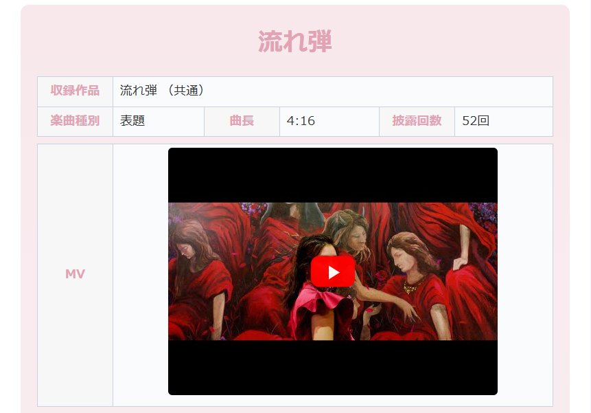 まず先頭には楽曲の基本情報とMVを掲載しています!